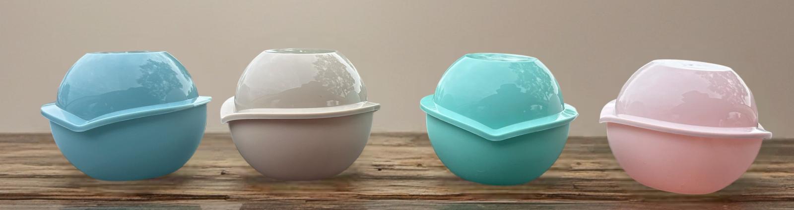Disponível em versão transparente e em cores azul celeste, verde-água, rosa e bege, todas em tons pastel que se adaptam a qualquer ambiente moderno.