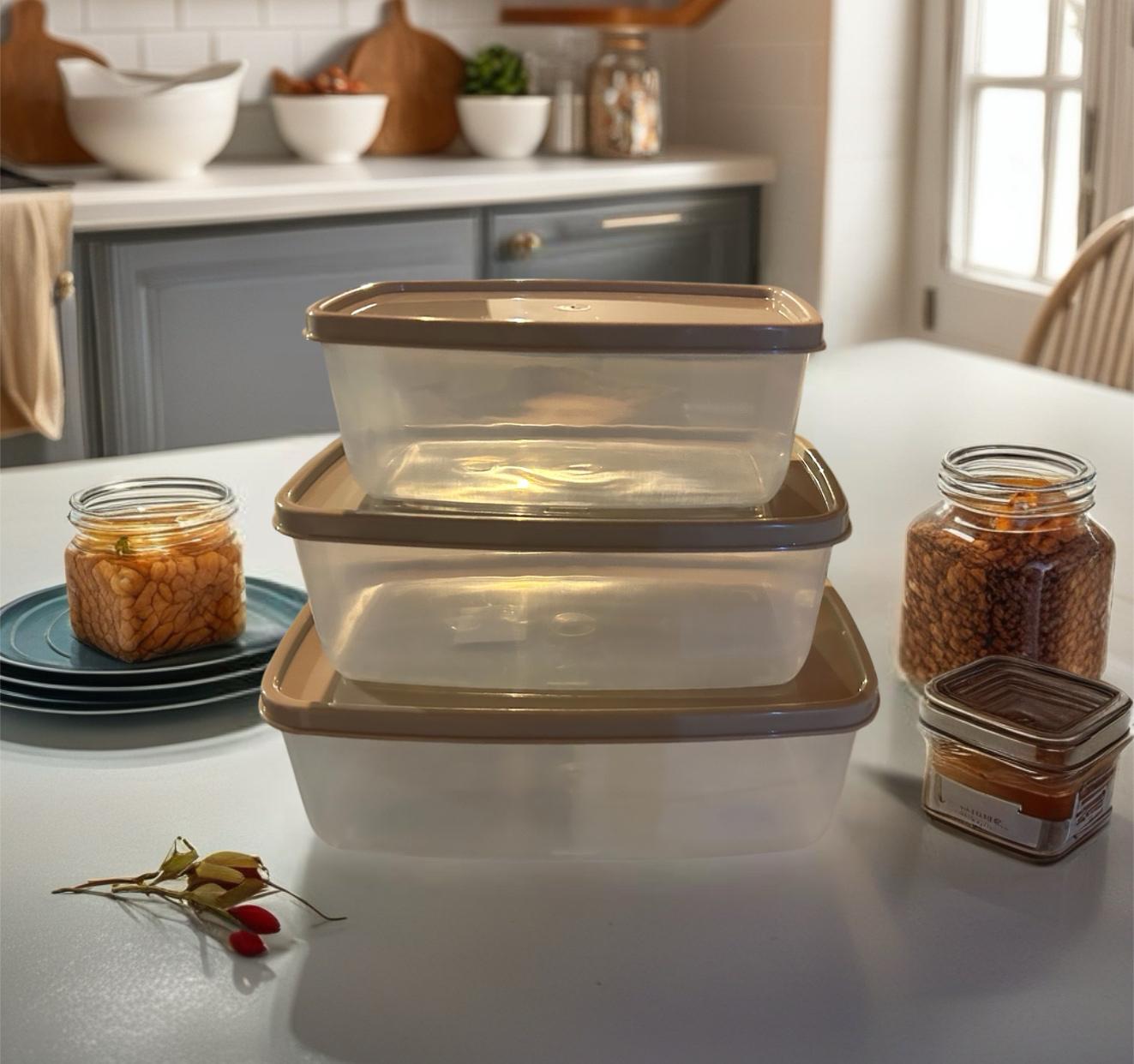 As nossas caixas retangulares são ideais para o dia a dia, combinando resistência e praticidade. Disponíveis em três tamanhos – 1 litro, 2 litros e 3 litros – adaptam-se facilmente a diferentes necessidades, seja para organizar a cozinha, guardar alimentos ou utilizar em qualquer espaço da casa.